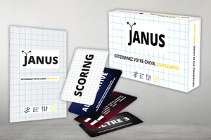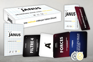 Fabien Olicard, a toujours apprécié les matrices et les modèles de prises de décision pour lui simplifier son quotidien et sa carrière. Il a eu l'idée de transposer une méthode complète de prise de décision sur un jeu de cartes : La méthode Janus.